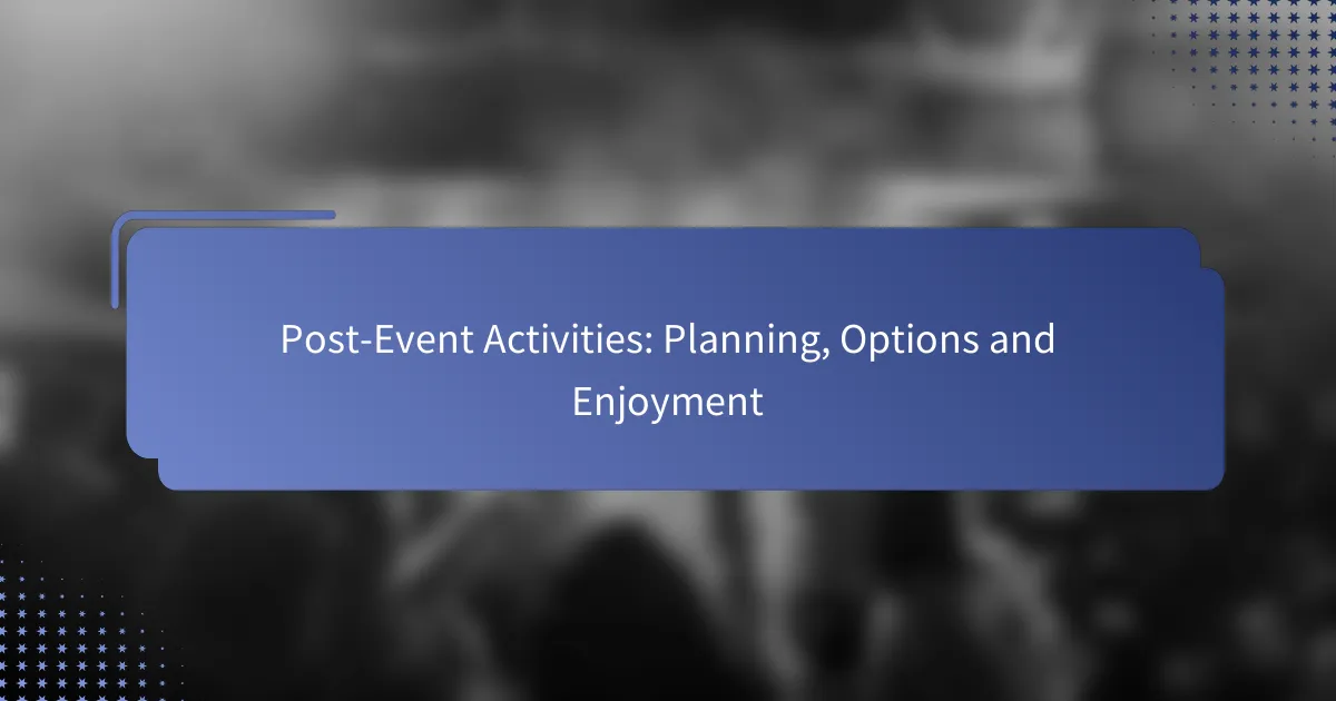 イベント後の活動は、参加者の満足度を高め、次回の参加意欲を促進するために重要です。効果的な活動には、明確な目的設定と適切な場所の選定が不可欠です。
